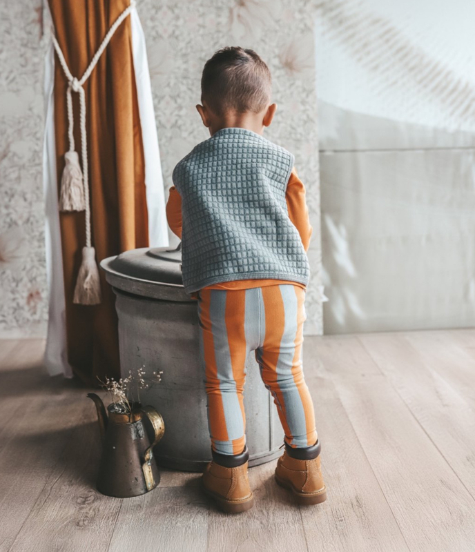 De Stagger Straight Pantalon is uitgevoerd in een geweven stof. De broek sluit door middel van een knoop met ritssluiting en heeft twee steekzakken en een fake kontzak. Er is elastiek in de tailleband verwerkt die je kunt verstellen, om zo de pasvorm perfect af te stemmen op het kindje.
